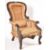 A 19th century High Victorian mahogany spoon back library armchair. The solid mahogany show wood frame with scroll elbow rests to cabriole legs and terminal hoof feet. Traditionally upholstered, awaiting covering. Measures approx. 101cm x 66cm.