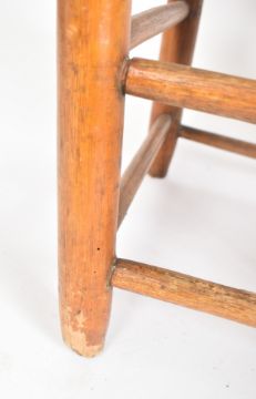 A late 18th century American ( likely Boston ) waggon seat / children's chair. The two seater having a maple frame with shaped dual panel backrest and rush seats below. All raised on turned supports united by stretchers. Measures approx. 72cm x 92cm x 50cm.