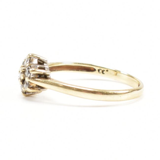 A hallmarked 9ct gold and diamond cluster ring. The ring hallmarked Sheffield. Weight 2.1g. Size P.5. Head 8mm. All weights measurements and sizes are approximate.