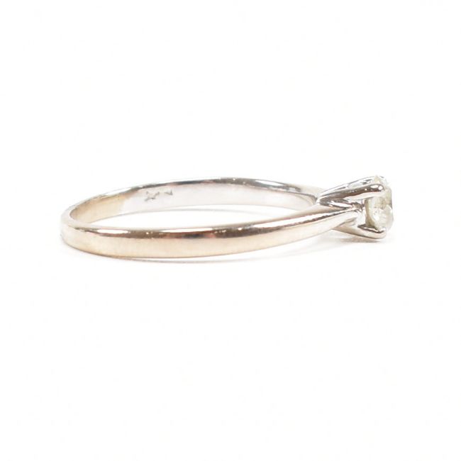 A hallmarked 18ct gold and diamond solitaire ring. Estimated diamond weight 0.35ct. Weight 2.5g. Size N.5. All weights, measurements and sizes are approximate