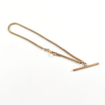 A 9ct gold early 20th century albert chain and t-bar. Raised 9C lozenge  with snake link chain having t-bar and lobster clasp. Total weight 10.70g. Length 30cm approx. All weights, measurements and sizes are approximate.