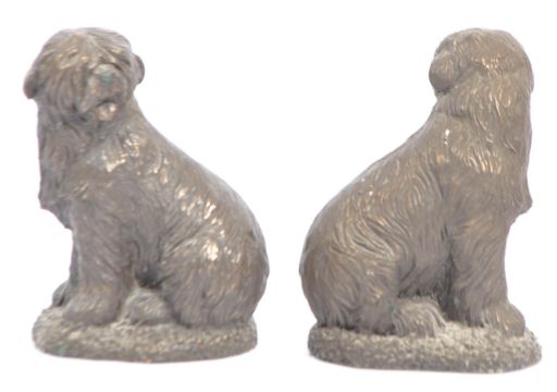 A pair of 20th century resin faux bronze bookends being modelled in the form of two Old English Sheepdogs. Measures 12cm tall.