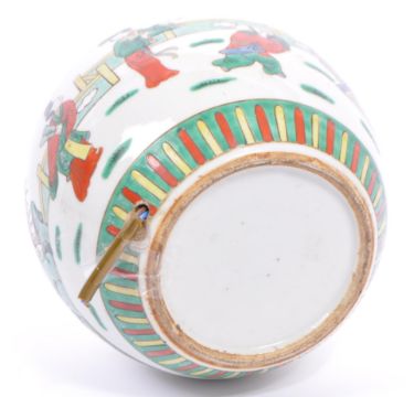A mid 20th century vintage Chinese Asian porcelain famille rose hand painted vase converted lamp. With polychrome hand painted decoration to body, with Asian figures and landscape. Measures approx. 24cm tall.
