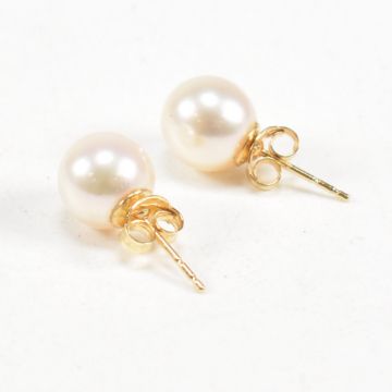 A hallmarked 18ct gold and cultured pearl necklace and earring suite. Hallmarked 18ct gold. Weight 3.9g. Measures chain 44 inches, pearl 7mm. All weights, measurements and sizes are approximate