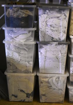 A large collection of assorted clothing comprising gentlemen's shirts, t-shirts, trousers, shorts and more.