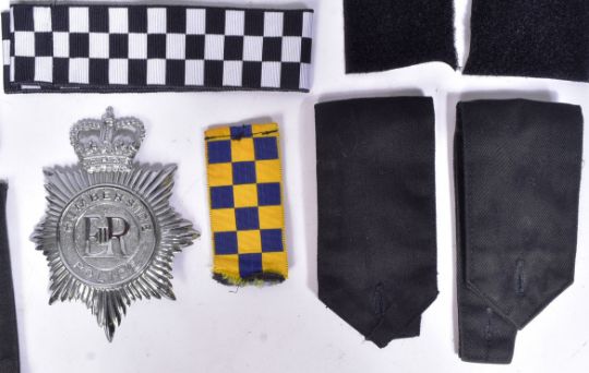 A collection of assorted British Police styles badges, patches, shoulder board, cuff ranks and more.
