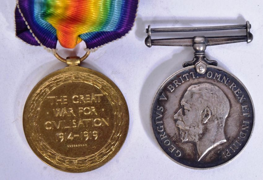 A WWI First World War Medal pair awarded to one 11527 Bombardier T Greenslade of the Royal Artillery comprising his British War medal and Victory medal.