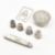 An assortment of silver and mother of pearl items. The lot to include four silver thimbles. The first thimble having a beaded flower pattern to the outside (marked 925). The second having a floral design to the lower half and beaded pattern to the top (hallmarked Birmingham 1923). The third thimble having a criss-cross pattern to the outside (marked sterling). The fourth having a mottled design. (unmarked however tests indicate silver). Together with a fruit knife. The knife having a mother of pearl handle and silver blade (hallmarked Sheffield, 1919). A silver plated lidded pot. The pot having a geometric floral pattern to the lid and a sterling silver place name holder. Total weight approx 90g. Largest measures approx 8cm. Smallest measures approx 2cm.