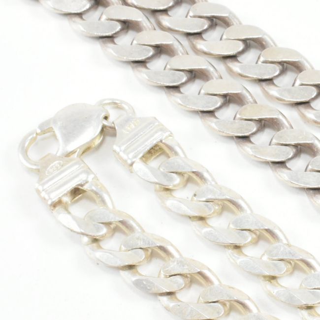 An Italian 925 silver curb link chain and bracelet. The bracelet and necklace both having lobster claw clasps. Both being marked ITALY and 925. Combined weight approx 101.8g. Bracelet measures approx 19cm. Necklace measures approx 48cm.