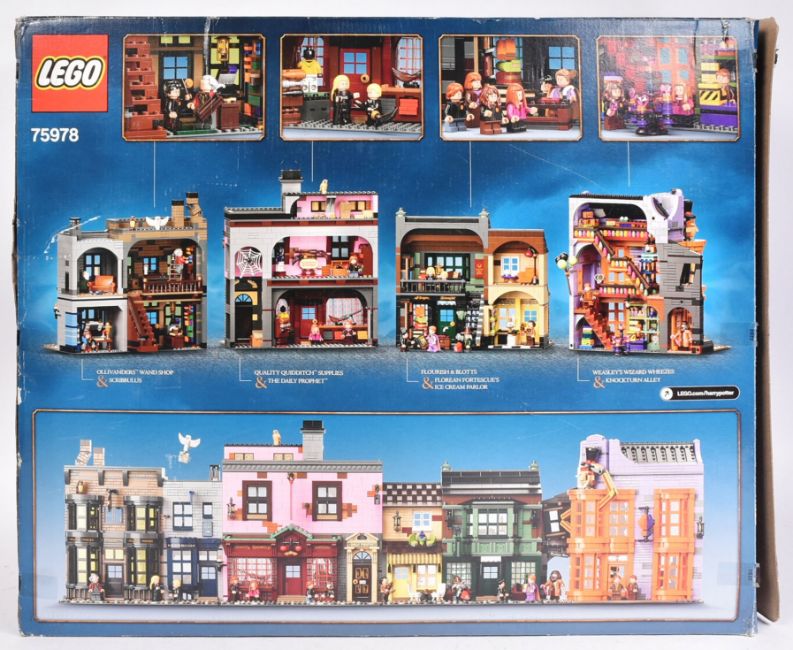 Lego - an original Lego Harry Potter set No. 75978 Diagon Alley. The set rebagged, with all minifigures, instructions and original box.