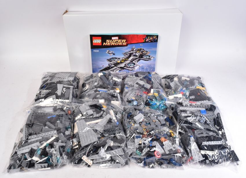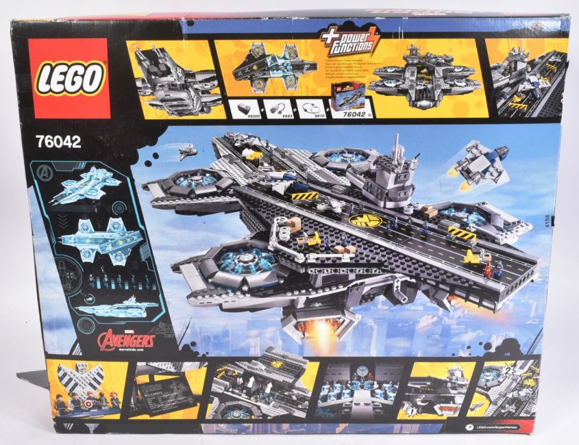 Lego -  an original Lego Marvel set No. 76042 The Shield Helicarrier. The set rebagged, with all minifigures, instructions and original box. Includes lighting and motor for rotors.