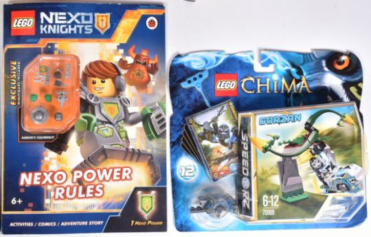 Lego - a collection of factory sealed Lego Nexo Knights and Legends of Chima. Sets to include; x2 Chima Whirling Vine sets, x2 Chima Speedorz sets, Nexo Knights 70310 Knighton Battle Blaster and more.