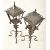 A pair of late 19th century painted wrought iron castle / stately home wall corner pedestal lantern lights. Each having a shaped top with scrolled finials atop over window shaped sides. Raised on twisted supports with scrolled motifs throughout. Raised on splayed supports to be fixed to a gate pedestal entrance. Each measuring approx. 95cm x 27cm x 27cm.