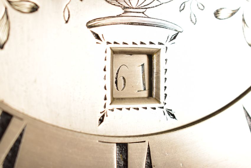 We do not provide opinions on the originality of component parts, accompanying documentation, boxes, or any additional material related to clocks and watches. Potential buyers are strongly advised to physically inspect the items in person before placing a bid, as we will not accept returns based on factors such as originality, completeness, or working condition.