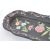 A collection of 19th Century hand painted chinoiserie ceramics by Davenport & Copeland. To include two polychrome chinoiserie candlestick holders, along with two matching cylindrical pots, decorated with multi coloured flowers, orange highlights to rims on a black ground. Includes a Copeland elongated dish with multi coloured polychrome floral decoration with scrollwork surround on black ground. All marked to bases. Largest measures 17.5cm (height).