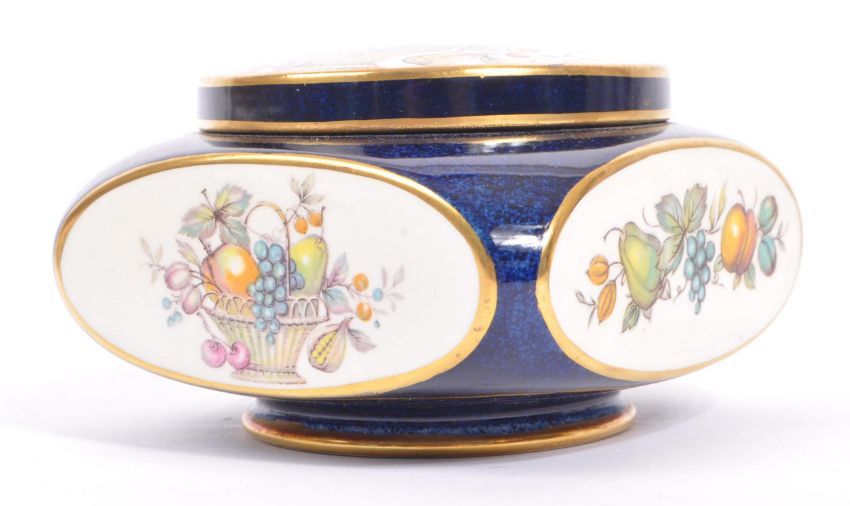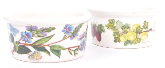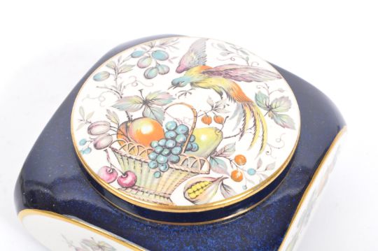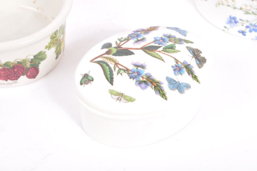 A collection of ten vintage 20th century ceramic trinket pots, most with lids. To include Carlton Ware, Coalport - Ming Rose, Portmeirion - The Botanic Garden, Raesuevic Ceramics, The Bristol China Company and Dip A Mano - Italy. Having flora, fauna and abstract transfer print decoration. Largest measures 5.5cm x 8.5cm.