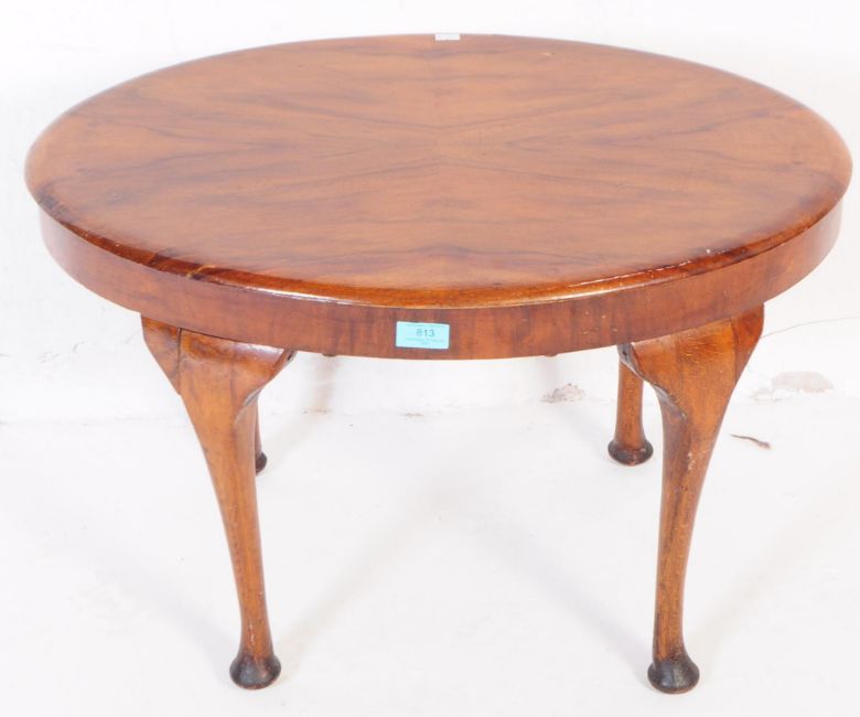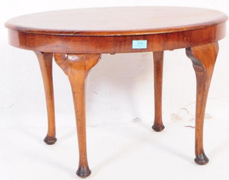 A Victorian / early 20th century oval oak coffee occasional table. With quartered oak finish to top, raised upon four cabriole shaped legs and plain pelmet around underside edge. Measures approx. 42cm x 67cm x 49cm.