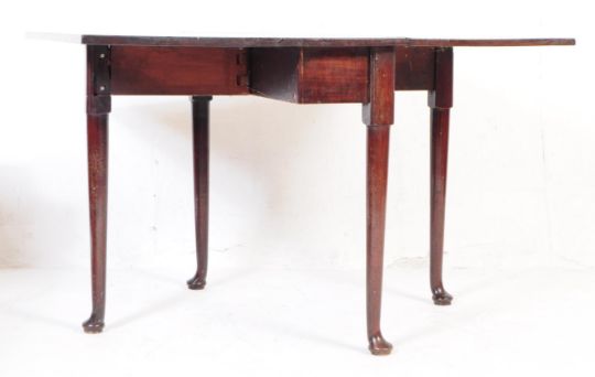 A 19th century George III mahogany drop leaf pad foot occasional side table. The table raised on tapered legs terminating in pad feet, with drop leaves to each side. Measures approx 71 x 94 x 32 cm (extended 122 cm).