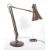 A retro mid 20th century anglepoise industrial factory table desk lamp light. Having a conical shade with press button to back on single arm support with hinged joint with spring loaded bars on a weighted base. In a brown colourway. Measures approx. 80cm tall.