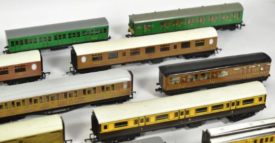 Model Railway - a collection of x20 assorted OO gauge model railway trainset locomotive rolling stock coaches and carriages to include; Triang Royal Mail, Wrenn Pullman, Lima Palethorpes Royal Cambridge and others.