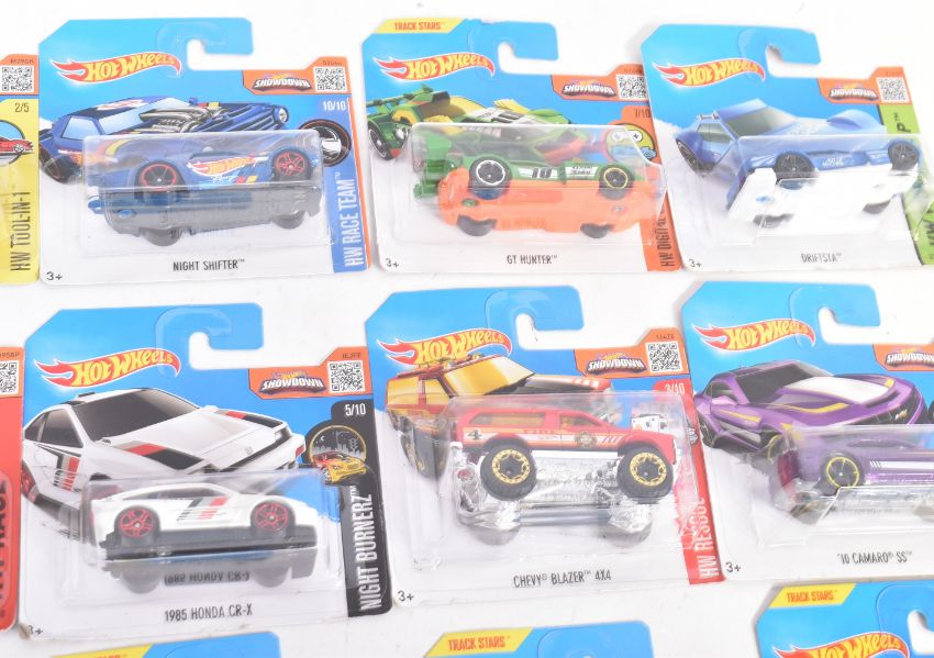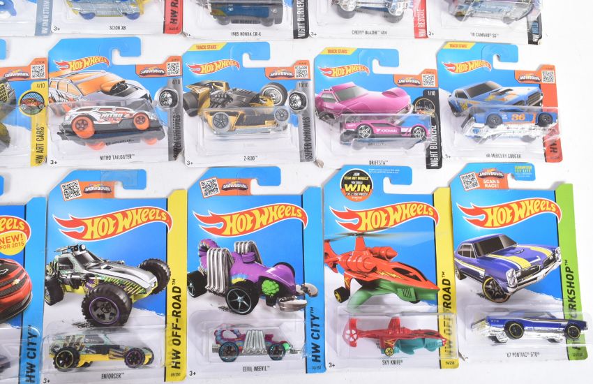 Hot Wheels - Mattel - a collection of x20 assorted 2010s Mattel made HotWheels carded diecast models. Various types, makes and models present. All carded, mint and as new.