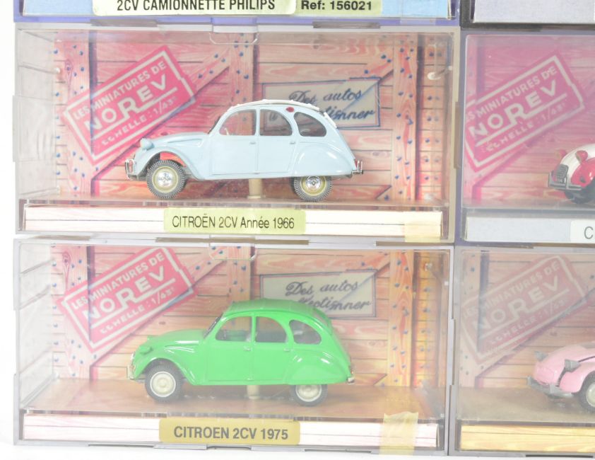 Diecast - a collection of 10 vintage Norev made 1/43 scale boxed diecast model Citroen cars. Boxed models still attached to inner display stands.