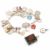 An 800 silver charm bracelet and two pendants. The lot to include an 800 silver charm bracelet with 27 charms. The charms to include geographical landmarks, flags, coins and flowers. Marked 800. A silver and mother of pearl triskelion pendant. Marked silver. A jasper compass pendant. Jasper pendant measures 2cm x 1.8cm x 1.6cm. Triskeles pendant measures 1.3cm x 1.7cm. Charm bracelet measures 18cm. Total weight 40g. All weights, measurements and sizes are approximate.