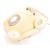 A collection of three mid 20th century rotary dial telephones. The telephones each in a yellow, cream, and olive green colourway respectively.