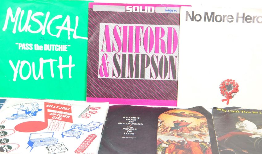 A large collection of 190 later 20th century 45 RPM singles vinyl records. Artists to include; Bee Gees, Kylie Minogue, George Michael, Tiffany, ABBA, Elton John, Madonna, Culture Club, David Bowie, Fad Gadget, The Monochrome Set, Jesus Jones, Deep Purple, Eurythmics, Guns N Roses, Roger Daltrey, Status Quo, The Stranglers, The Beatles, Duran Duran, Space, Thin Lizzy, Cyndi Lauper, China Crisis, Bruce Springsteen, ELO, Rod Stewart, Strawberry Switchblade, Skids, XTC, Fleetwood Mac, Bauhaus, Frankie Goes To Hollywood, Van Halen, Mike Oldfield, The Jacksons, Gladys Knight & The Pips, Marvin Gaye, Rose Royce, Sister Sledge, Tom Jones, Sam Cooke, The Equals, amongst many others.. Labels to include Tamla Motown, Epic, Phonogram, Buddha, Beggars Banquet.