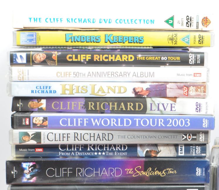 Sir Cliff Richard OBE (born Harry Rodger Webb, 14 October 1940) - A collection of compact discs CDS, vinyl records and DVDs. To include, Move it, saviour's day, honky tonk angel, Cliff Richard and the Shadows - summer holiday, more to life, 75th birthday concert at the Royal Albert Hall, still reelin and a-rockin' live in Sydney, bold as brass, the soulicious tour and many other titles.