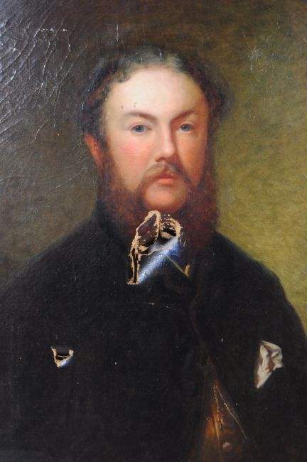 Two mid 19th century Victorian oil on canvas portrait paintings The pictured depicting a noble man (AF) and lady respectively. Paintings unsigned, each framed in pitch pine and gesso gilt frames by Robert Hay, Gilder & Frame Maker of Edinburgh (marked to back). Measures approx. 101 x 88cm