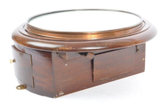 Of Horology Interest - Vintage Post Office mahogany wall clock with fusee movement. Having a circular front with white face and Roman numeral ebonised chapter ring. With pendulum. Measures approx. 39cm diameter, 15cm deep.