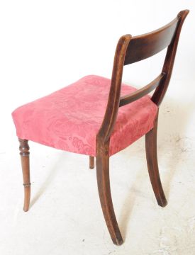A set of six 19th century George IV Regency mahogany bar back dining chairs, with turned front legs. Alongside a Regency revival mahogany twin pedestal dining table. Measures approx 76 x 130 x 107 cm (Extended 180 cm).
