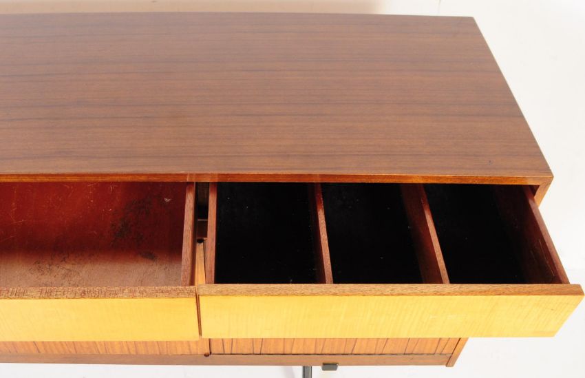 Wrighton - A vintage mid 20th century circa 1960s teak and satinwood Wrighton sideboard credenza. The sideboard being raised on ebonised X-frame supports with a series of three drawers above three loop handled cupboards. Measures approx 88 x 153 x 46 cm.