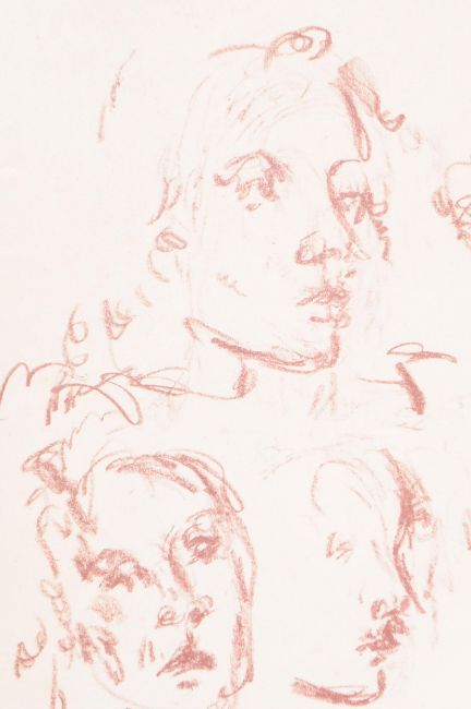 A vintage 20th century drawing sketch portrait study. Depicting three human faces in abstract. Signed bottom right. Framed and glazed. Measures approx 47 x 37 cm.