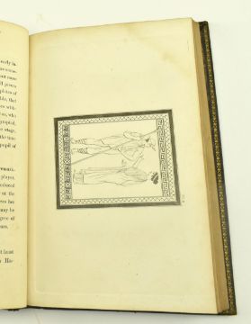 Hamilton, Sir William. 1814 Outlines from the Figures and Compositions upon the Greek, Roman and Etruscan Vases of the late Sir William Hamilton, with engraved borders drawn and engraved by the late Mr. Kirk. Second edition, published by McLean, Sackville Street Piccadilly, printed by R. Howlett, 10 Frith Street Soho. Full contemporary straight grain morocco, gilt borders, tooling to spine & raised bands, gilt dentelles & marbled endpapers. Light bumping to extremities and the head and tail of the spine.