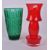 Two mid Century vintage believed to be Czech green glass vase with impressed teardrop decoration throughout accompanied by a and studio art glass red dumbbell Riihimaki vase. Measuring approximately 27cm tall.