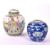 A 19th Century porcelain Chinese blue and white prunus ginger jar of ovoid form and double ring mark to base. Accompanied by a later 1920s Chinese ginger jar lidded in white ground with hand painted oriental scenes and figures. Measuring approximately 20cm x 17cm.