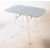 A mid 20th century formica top kitchen dining table and four chairs. The table having a pale blue formica top with starburst pattern design, of rectangular form with drop leaves to sides, raised on a white painted bent metal tube frame. The chairs having plastic upholstery of similar design, raised on bent metal frames in white colouring. Measures approx. 77x90x60cm