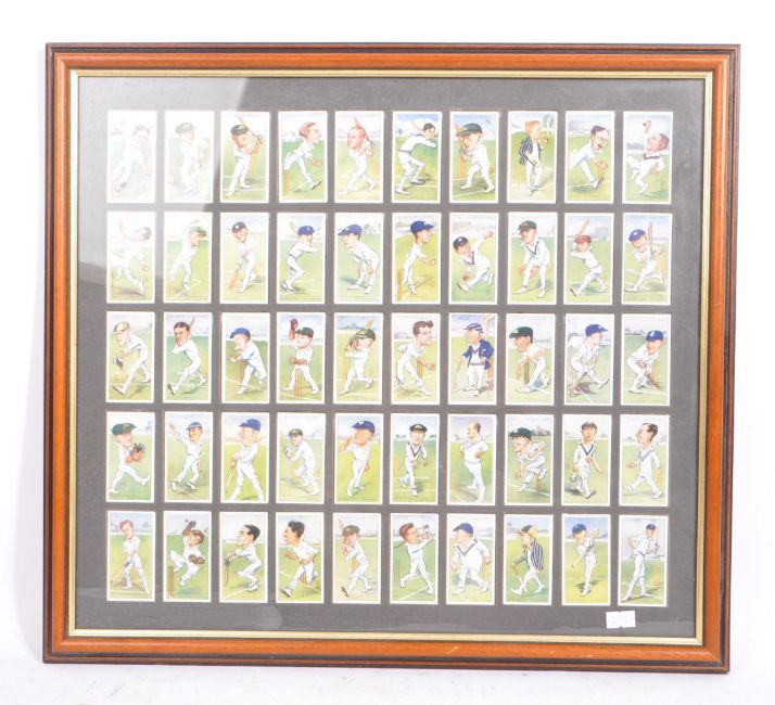 Players Cigarettes - Collections of vintage 20th century cigarette cards. Cricketers caricatures by 'RIP' a series of 50. Framed and glazed. Measures approx. 46cm x 51cm