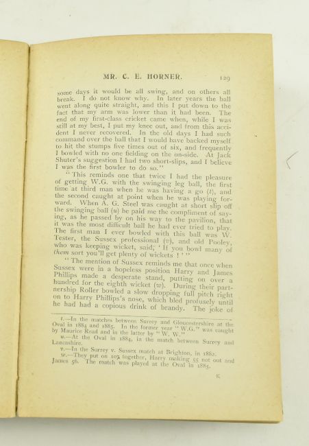 Cricket interest. A collection of ten late 19th century Victorian sport reference works regarding cricketing. Comprising 1898 With Bat and Ball by George Giffen publ. Ward, Lock & Co., 1866 Jerks in from Short-Leg by Quid publ. Harrison, 1893 The Young Cricketer's Tutor by John Nyren publ. David Nutt, 1887 The Cricket-Field by Rev. James Pycroft publ. Cricket Press, 1898 The Jubilee Book of Cricket by Prince K. S. Ranjitsinhji, 1900 The Walkers of Southgate publ. Methuen & Co., Chats on the Cricket Field by W. A. Bettesworth publ. Merritt & Hatcher Limited, 1899 Seventy-One Not Out - the Reminiscences of William Caffyn publ. William Blackwood and Sons, 1926 A History of Cricket by H. S. Altham publ. George Allen & Unwin Ltd, and 1926 A Cricketer's Yarns by Richard Daft, publ. Chapman and Hall. All presented in publisher's original cloth, many illustrated. 8vo.