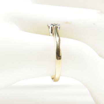 A hallmarked 9ct gold and diamond solitaire ring. The ring having a single illusion set round brilliant cut diamond with chenier shoulders. Hallmarked for Birmingham. Sponsor's mark LBLd. Estimated diamond weight 0.20cts. Ring sold as found with split in shank. Measures J.5. Weighs 1.7g. All weights, measurements and sizes are approximate.