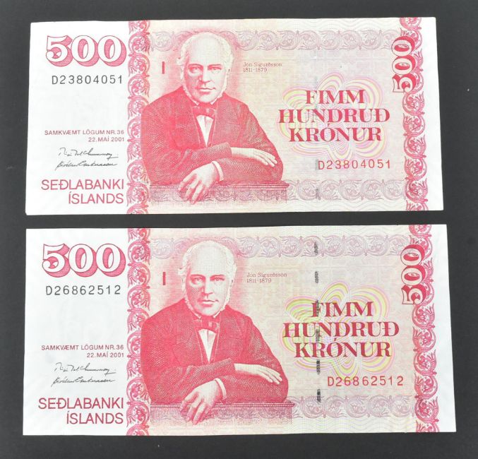 A collection of International European uncirculated banknotes bank notes to include; 2x Iceland 22.05.2001 500 kroner, 2x 22.05.21 1000 kroner, 1x 5000 kroner 22/05/2001, 3x Malta 1989 issue 2 liri, 2x Malta 1989 issue 5 liri, 1x 1979 issue Malta 1 liri, 2x Poland 1988 50 zlotych, 1x Poland 1982 1000 zlotych, 2x Poland 100 zlotych, 1x Romana 1999 commemorative issue 11.08.99 2 doua, 1x Russia 1997 New Ruble issue 10 ruble, 1x Russia 1997 New Rubel issue 1997 100 rubel, 1x Russia 1997 New Rubel issue 1000 rubel, 1x Tatarstan 1991-1993 first currency check issue 100 rubel (printed on one side only), a Spain 19/06/48 1 peseta, 1x Spain 23/10/79 1000 pesetas, 1x Gibraltar 4/08/1988 one pound L580093, 1x Sweden 1981 5 kroner, 1x Slovenia 1990-1992 tolar, 2x 1970 5 lirasi, 1x 1970 Turkey 10 lirasi, 1x 1970 Turkey 50 lirasi, ix 1970-1984 100 lirasi, 1x Turkey 15/05/72 100 lirasi, 1x Turkey 1986 1000 Lirasi, 1x Tukrey 1990 5000 lirasi, 1x Turkey 1988 20000 lirasi, 1x Turkey 1989 50000 lirasi, 10x Turkish 1991 10000 lirasi (serials all in sequence) D40043180-D40043190, 4x Turksih 250000 lirasi (serials all in sequence), 4x Turksih 1993 500000 lirasi (serials all in sequence), 1x Turkish 1995 1000000 lirasi E04437579, 1x Turksih 1997 5000000 lirasi D21844677, 2x Turkey 2005 10 lirasi, 2x Turkey 2005 20 lirasi, 2x Turkey 2009 20 liras, 1x Turkey 2005 50 lirasi. The large majority being uncirculated.