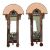 John Leathwood, Hull - An Art Nouveau style pair of stained leaded glass decorative wall sconces mirrors. Each having an arched top over a central mirror plate & candle holder shelf. Signed to verso. Each measures approx. 47cm x 23cm x 10cm. Some general wear & damage to lead and glass due to age.