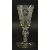 An 18th century Bohemian hand-blown engraved goblet drinking glass. The goblet having a tapering bowl hand engraved with foliate swags motifs and pair of crest shaped cartouche depicting putti / cherubs. Shaped faceted stem, raised on circular engraved foot. Measures approx. 19cm tall x 9cm in diameter.