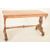 A Victorian 19th century walnut marquetry inlaid writing desk table. The table having a marquetry specimen inlaid top with chamfered edges. Fitted frieze below with dentil gadrooned details. Pierced pedestal supports to each side united by turned central stretcher. Raised on octagonal squat feet. Measures approx. 72cm x 122cm x 65cm.