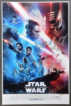 Star Wars - The Rise Of Skywalker - multi-signed 12x8" colour poster photograph, signed by JJ Abrams, Kelly Marie Tran, Ian McDiarmid, Chris Turner, Naomi Ackie, Shirley Henderson and Brian Herring. Signed in silver, gold and black ink, all undedicated. Obtained personally at the UK premiere in London. Supplied with a certificate of authenticity. Some smudging to the silver autographs.