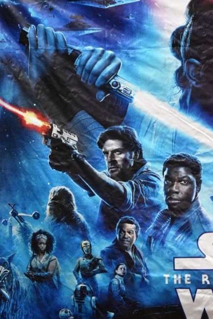Star Wars - The Rise Of Skywalker (2019) - original very large vinyl cinema / movie theatre display banner depicting the artwork for the film. ' Book Tickets Now ' text to base. Vinyl construction, with rubberised edging. Measures approx: 2m  x 3m