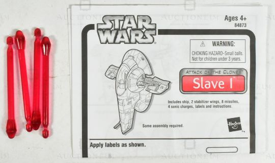 Star Wars - 2001 Hasbro made Attack Of The Clones ' Jango Fett's Slave 1 ' action figure playset. Appears complete with both fins and back guns, and retains original instructions. Housed within the original box.