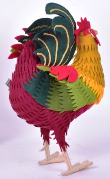 Teddy Bears - an original German Steiff made soft toy teddy bear 411519 in the form of a cockerel. The cockerel filled with wood shavings and layered in coloured felt and glass bead eyes. Measures approx 24cm tall. Boxed with certificate.